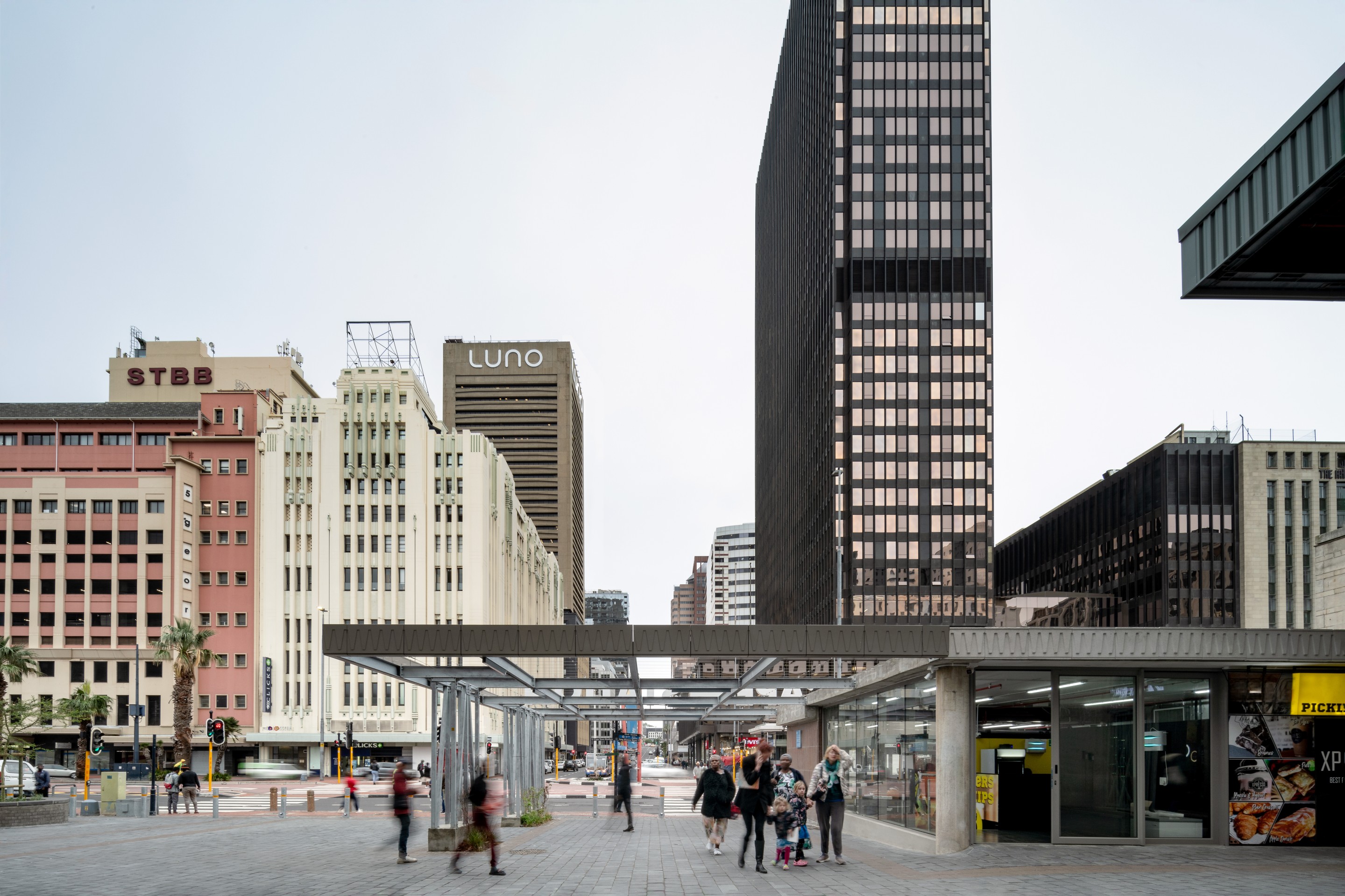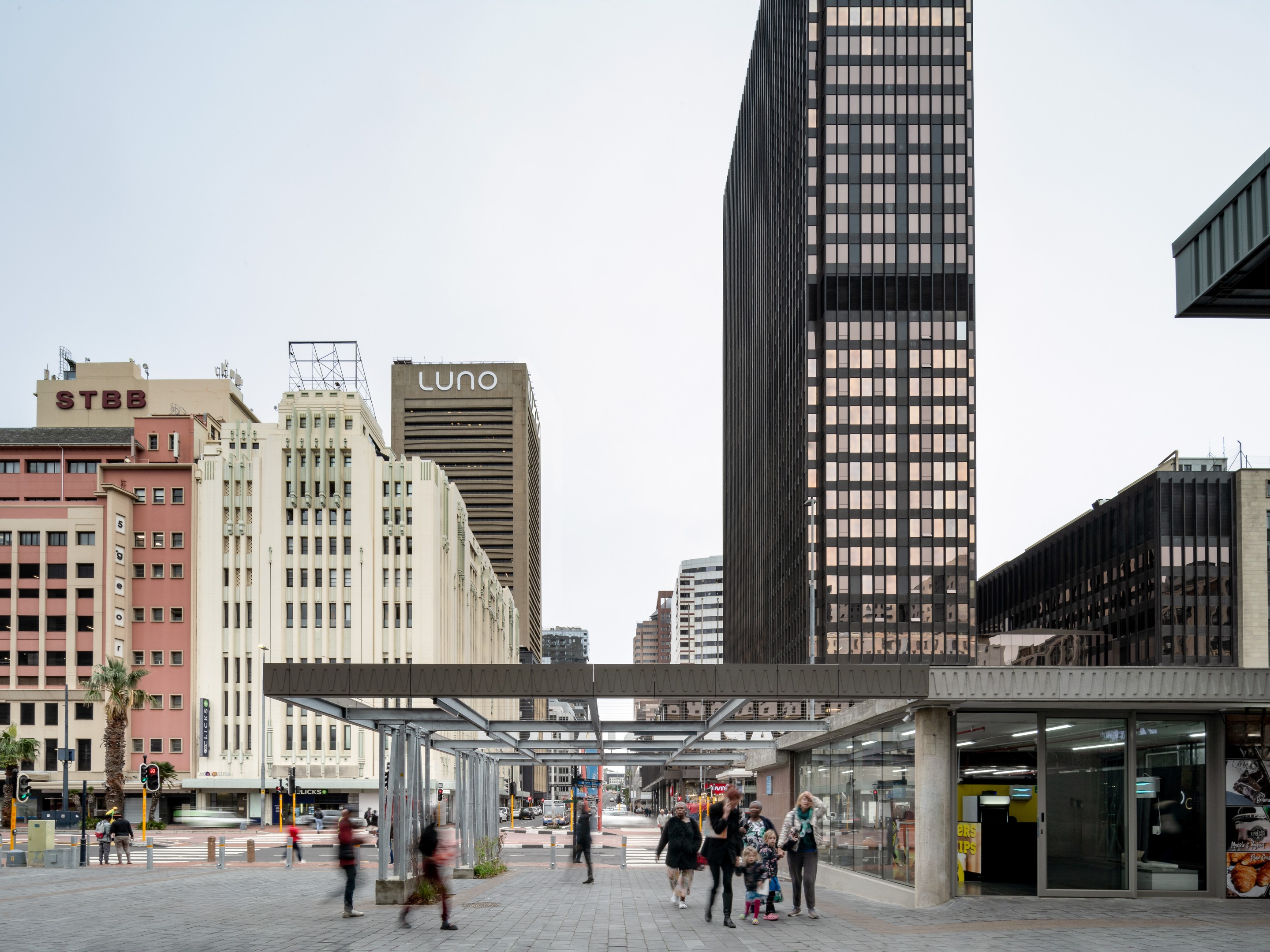 The new precinct was intentionally designed to facilitate pedestrian movement ‒ opening two urban corridors ‒ and to encourage the use of public transport. One corridor enables direct pedestrian access between Strand Street and the railway station (at the same time establishing a grand entrance) while the other extends Riebeek Street into the Galleria. Along the same axis, a new bridge penetrates through the station concourse building. Parking space was minimised, but, as a major transport interchange, the site has easy access to trains, buses and taxis.