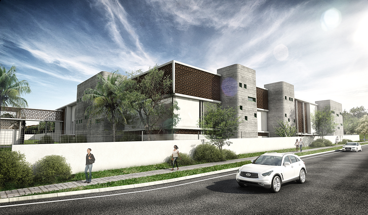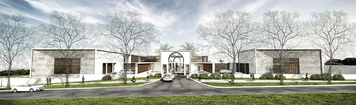 Security and privacy was one of the main considerations in the layout and zoning of the site. Two core axis running North to South and East to West divide and connect the private and the public functions of the embassy. The public entrance is located on the Eastern side of the project and runs through the site culminating in a sculpture garden on the Western side while the North-South axis is exclusively for the use of embassy staff. Visual connection and transparency between the public and private corridors are created through the use of decorated screens.